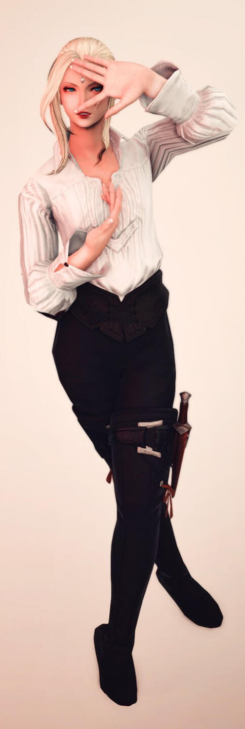 Lucretia arrived at Eorzea recovering from the devastation of the battle at the Carteneau Flats. People were displaced, starving, suffering, and the land was crying out for any semblance of hope. When the vessel carrying her docked in Limsa Lominsa she exited the vessel with her third eye concealed. In a sickened stupor from her long voyage, she stumbled along the dock towards the Lominsan Customs desk. Lucretia witnessed those ahead of her having to declare themselves. Thinking quickly, she gave the name of a Garlean boogie man she had read about in her father's study during her lessons on Garlean folklore, Amdusias. Lucretia, now Amdusias in this new land, did not declare a family name but instead stated she was without a family. Despite her anxiousness, Lucretia was granted access and set forth almost immediately. She dedicated the early days of her arrival to exploring the lands scarred by the red moon. From Limsa Lominsa, to The Black Shroud, to Thanalan, Amdusias traveled, seeing the displaced Ala Mhigans outside Ul'dah, to the starved poachers in the Twelveswood. There was so much strife and loss in these lands and tensions between the city states were high.Equipped with almost nothing but her clothes and a gunblade.When Lucretia stepped foot back in Garlemald propper for the first time since her departure, she was in shock, driven to tears, and inconsolable. The nation for which she loved and wished to redeem was brought unto destruction. The smoldering remains of what was once a prosperous and bustling city shattered whatever rose-tinted memories she had of her home. Having been brought in to aid in relations with the surviving locals, she began the process of scouring every ilm of snow for survivors, or those in need of a proper burial.Her search went on for days, weeks, and months, and the longer she searched the more despairing was the conclusion she was brought to. There had been no record of any survivors bearing her family name. Not her mother, not her father, nor her siblings have been located.Presuming the worst had come, Lucretia began to look upon the ashes of what was once her home; she sought to bring about what had been done in Ishgard and Ala Mhigo. Garlemald, she thought, could be rebuilt better and more free than the regime of the past. This however, would be a long process, as first there must be healing, between those survivors of Garlemald, and those the Empire once oppressed.
