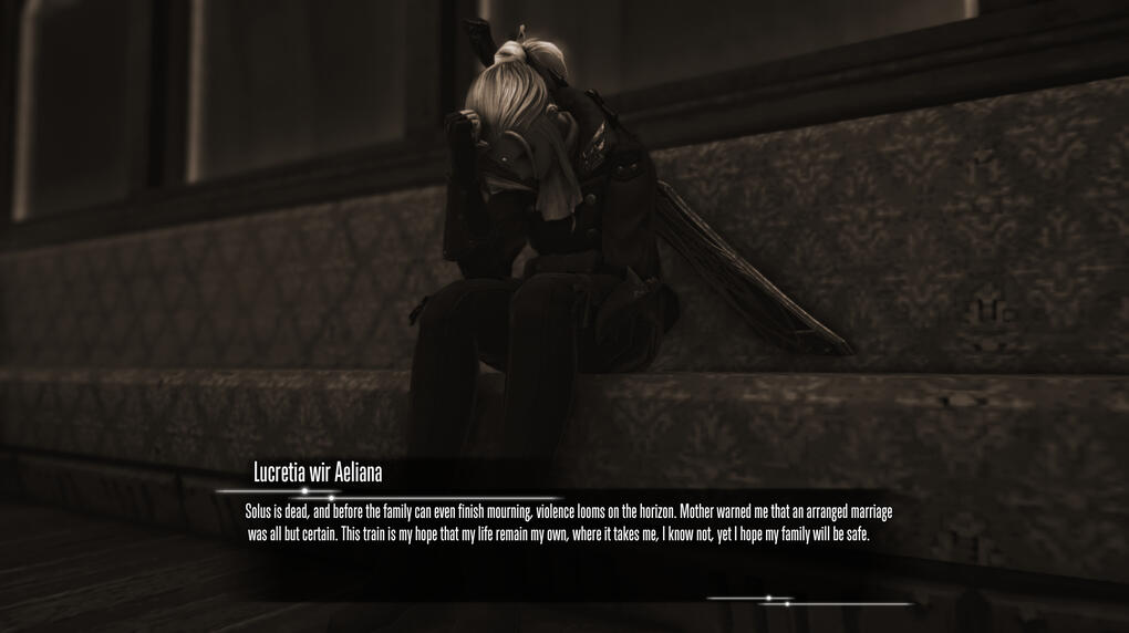 There was a time when the name Aeliana was unknown to most Garlean patricians. That was until a brilliant engineer rose in promenince through the Imperial Magitek Academy, and eventually through the Magitek Engineering Corps. Skill and talent were both attributes that the diligent Cato jen Aeliana possessed, joining the Imperial Army as an Architectus soon after his nineteenth name day. Much like in the academy, Cato's knack for magitek was noted and by his twenty-third nameday, achieved the position of Architectus Magiteci. Married to his work, he held this position as Cato nan Aeliana, until his thirty-sixth nameday had come to pass, being offered the position of Primus Architectus Magiteci, this however, was a short lived appointment. When it was discovered that Cato had organized the Academy's curriculum around the principle of designing magitek for the purpose of man's benefit, and not weapons of war. Clearly, this ran afoul to the war goals that Emperor Solus zos Galvus had established and due to the reputation of the station of Primus Architectus Magiteci being integral to the integrity of the Academy, Cato nan Aeliana could not simply be removed from the position, thus enters Decima wir Galvus.Born as one of the grandaughers to the Emperor, Decima was always thought to be a ray of sunshine within the bleak cold of the Garlean homeland. She had no aspirations, no unique talents, or notable features other than the beautiful smile she wore almost all the time. As it was expected of Garlean royalty, Decima was prim, proper, and well refined in her manners. She was always notably cheerful in the palace when she would meet her grandfather, and with people in general. When Decima was nineteen, she was called to meet her grandfather, and upon leaving her meeting, that beautiful smile ceased to be. It was decided that Decima would be married to a man that she had never heard of, let alone met. A man, seventeen years her senior, was soon to be her husband, never having occurred to her that such decision would be out of her control. It was only a month before the marriage was official and it was said that Decima did not smile a single time.Granted a villa in the Garlean countryside, Cato wir Aeliana was forced to retire his station, due to the the new responsibilities that marrying into the royal family would entail. Having his ambitions trampled by the Emperor himself, he became a bitter man, spending his time building up his own personal workshop within the villa, neglecting his new wife. Save for the servants that attended to her, Decima was isolated without her husband. It would be three months before the two would feel the pressure to produce an heir and a full year after they were wed for their first and only child to be born. Whereas parents are naturally inclined to feel love towards their newborn, the baby royal was met with disdain and scorn. Born Lucretia wir Aeliana, sole daughter and heiress to newly established House Aeliana, the babe was but a living token of lack of agency both Cato and Decima had. To her mother, Lucretia was a reminder of the smile that was robbed from her. To her father, a reminder of the career taken from him.- -----------------Growing up-----------------